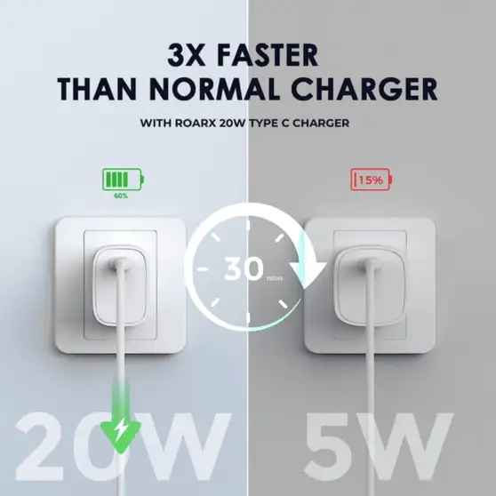 20W Super Fast PD Travel charger with C To iphone Cable 3 delivers reliable, high-speed charging for your Galaxy smartphones. With Power Delivery (PD) technology and a Type-C interface, it efficiently charges your device up to 50% in just 30 minutes.